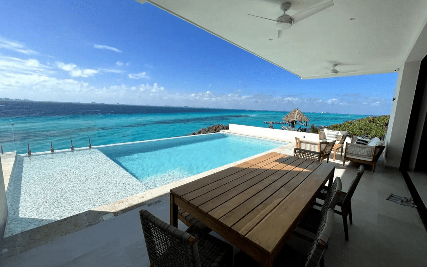Welcome to Casa Mare โ a vibrant embrace between luxury and the spirited heart of Isla Mujeres. Here, every sunrise feels personal, and the gentle whispers of the Caribbean beckon you closer. You can enjoy the views from the private infinity pool, the outdoor grill, or just from the indoor (AC) living and dinning rooms.