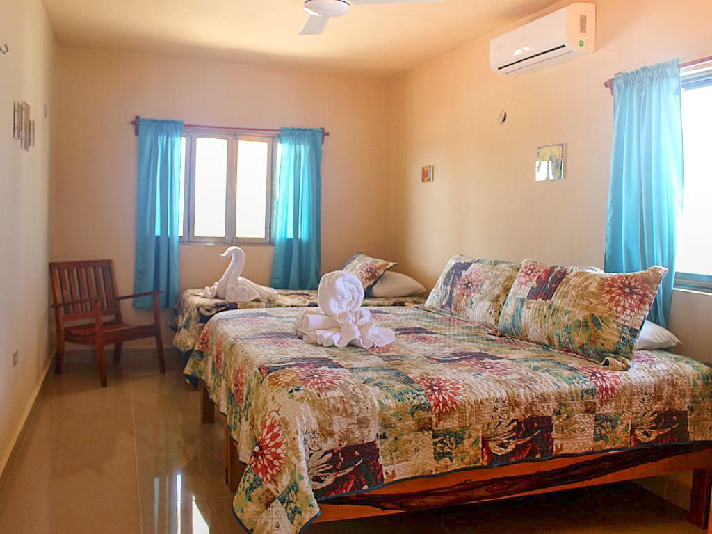 Casa Perla 5 bedrooms that sleeps 12 in Isla Mujeres with Caribbean views This three level home with 3 separate units faces the rolling waves of the Caribbean ocean. Take advantage of a private patio and a dipping pool for some peaceful R&R. Suite 1 boasts a master bedroom with king-sized bed and a modern, spacious en-suite bathroom with a bathtub. The second bedroom also has a king-sized bed and a single bed. The living area is spacious and comfortable, with plenty of seating, air conditioning, and a fully-furnished kitchen that comes with everything you need to cook fresh meals with local ingredients — or to whip up evening cocktails to take to the roof.